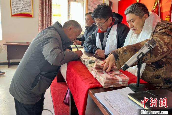 圖為2月19日,西藏那曲安多縣帕那鎮(zhèn)申格卡崗村牧民分紅?!≈袊?guó)鐵路青藏集團(tuán)有限公司 供圖