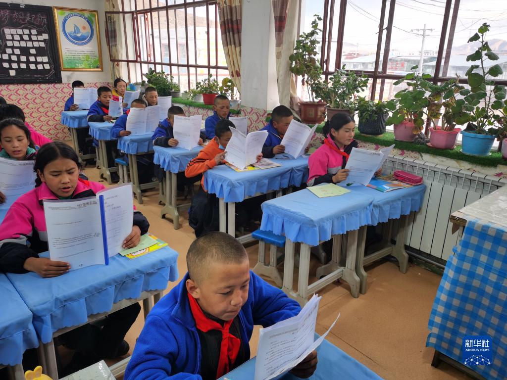 西藏阿里地區(qū)革吉縣完全小學(xué)六年級(jí)一班的學(xué)生們正在供暖的教室里學(xué)習(xí)。(強(qiáng)巴曲珍 攝)