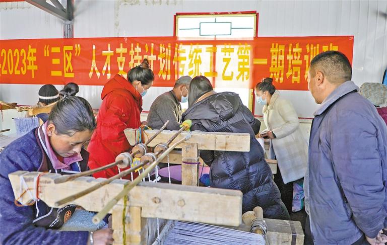 近日,山南市洛扎縣組織25名學員,采用理論與實操相結合的方式,舉辦了2023年“三區(qū)”人才支持計劃傳統(tǒng)工藝第一期培訓,現(xiàn)場教授學員學習卡墊織造技藝。