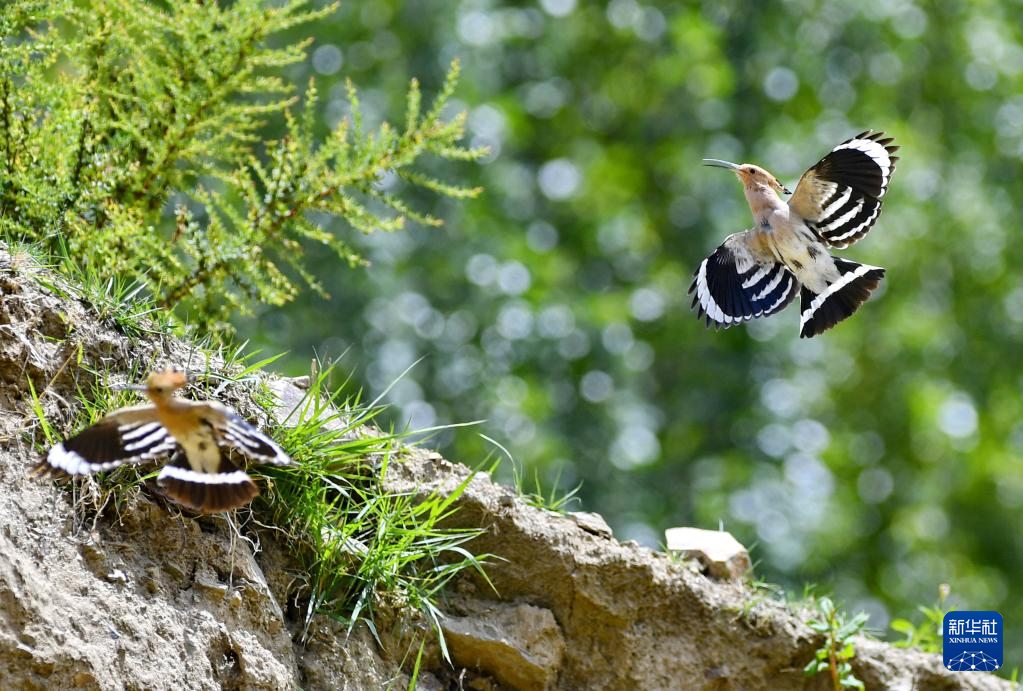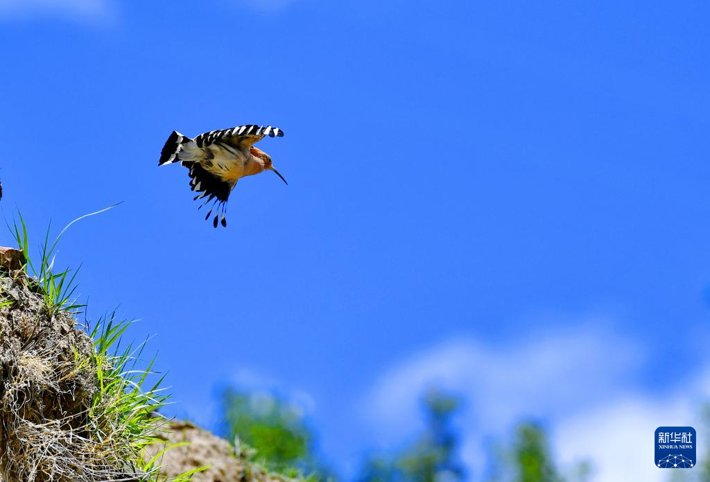 飛翔中的戴勝(6月29日攝)。新華社記者 張汝鋒 攝