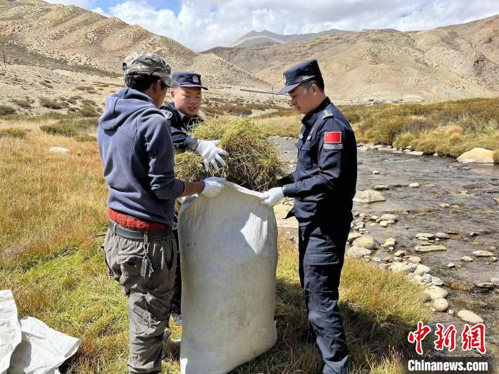 20日,在西藏阿里地區(qū)札達(dá)縣曲松鄉(xiāng)草場(chǎng)上,一眼望去處處是忙碌的身影,曲松邊境派出所移民管理警察和轄區(qū)民眾齊心協(xié)力,為儲(chǔ)存牲畜越冬度春飼草料辛勤勞作。
