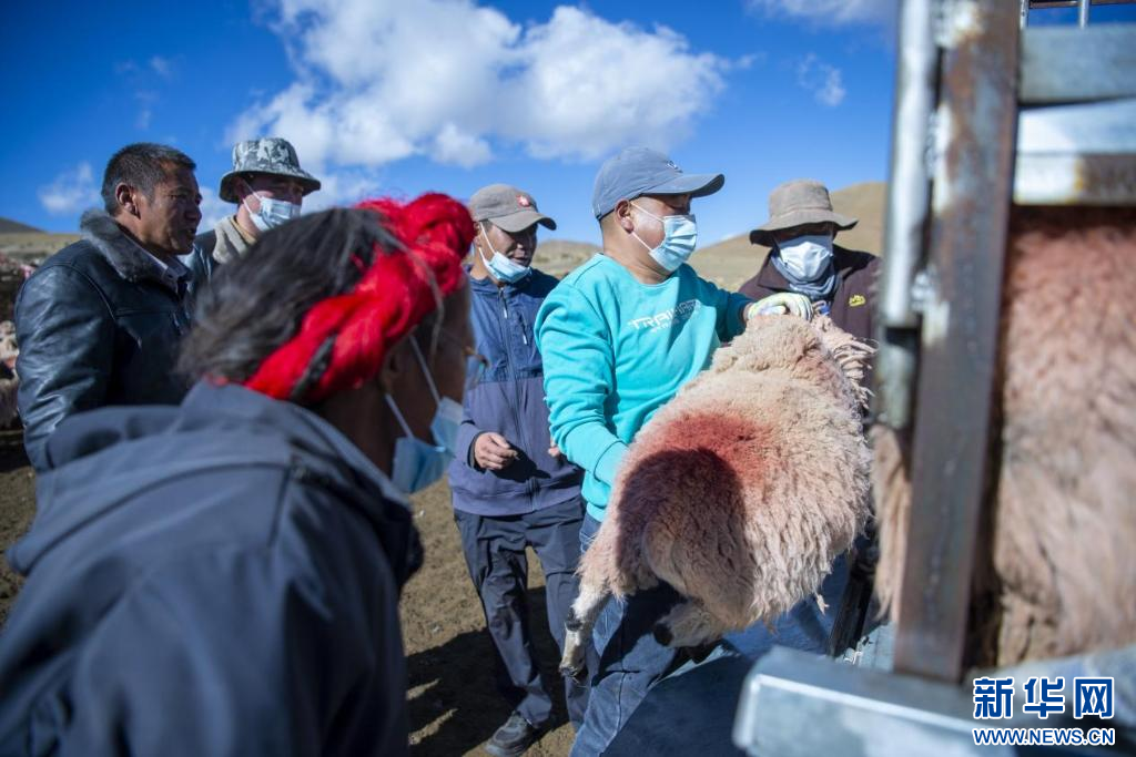 商戶(hù)在挑選綿羊。新華網(wǎng) 旦增努布 攝