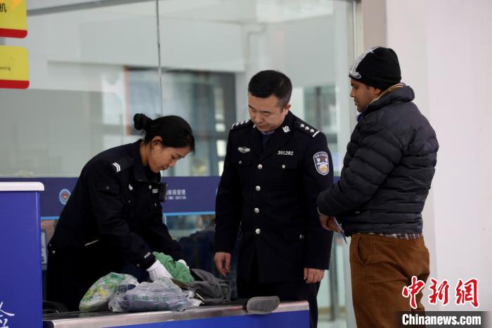 圖為聶拉木邊檢站民警對(duì)出境旅客的行李物品進(jìn)行檢查。 鄒興國(guó) 攝