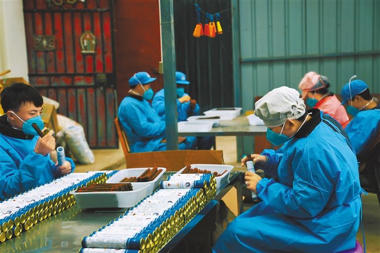 色扎鄉(xiāng)索巴村嗒哪藏香加工廠廠房內(nèi),工人在制作藏香。記者 平措郎加 攝