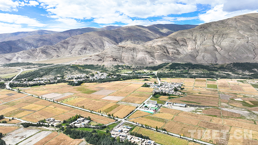 圖為隆子縣萬(wàn)畝黑青稞基地(航拍圖) 攝影:次仁羅布