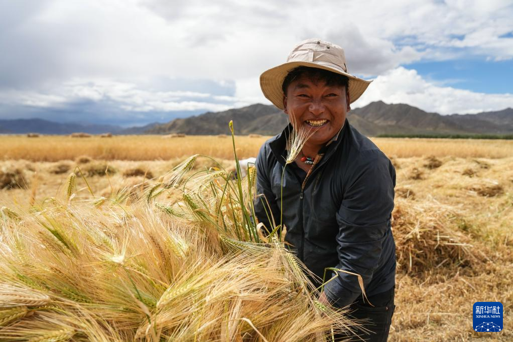 收獲季節(jié),享有“西藏糧倉”美譽的日喀則田野一片金黃。在日喀則市白朗縣巴扎鄉(xiāng),農民采用機械化、半機械化收割方式,高效收獲成熟的青稞。