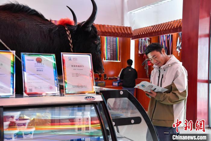 10月25日,西藏自治區(qū)那曲市聶榮縣,畜產(chǎn)品深加工產(chǎn)業(yè)正成為帶動牧民增收致富的新引擎。圖為游客參觀嘎確生態(tài)畜牧業(yè)發(fā)展有限責(zé)任公司產(chǎn)品展示區(qū)。中新社記者 貢嘎來松 攝