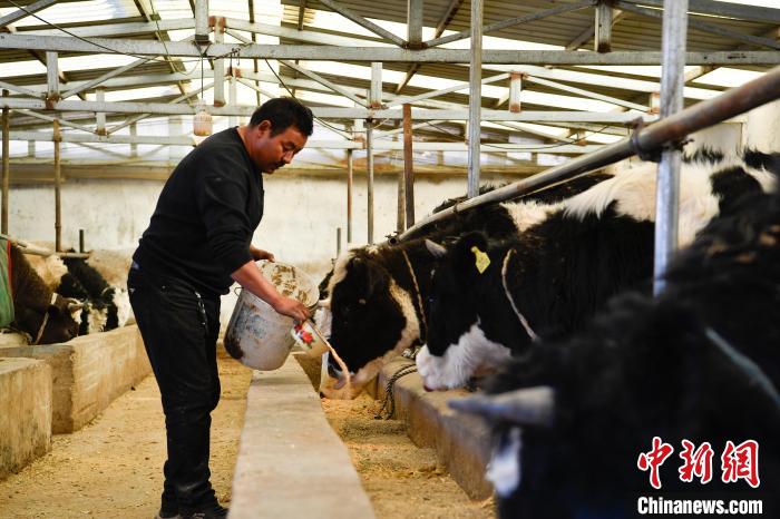 圖為村民強巴旦達在喂牛。趙朗 攝