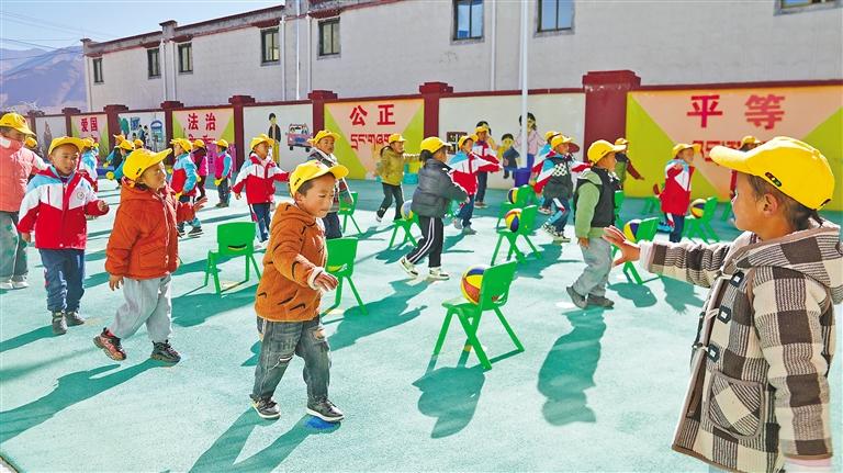 圖為南木林縣多角鄉(xiāng)中心小學(xué)內(nèi)學(xué)生們?cè)谶M(jìn)行戶外活動(dòng)。圖/文 記者 旦增嘎瓦 通訊員 倉木拉 平措歐珠