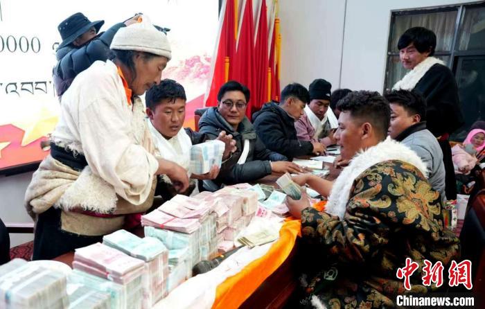 西藏申扎縣各合作社給民眾發(fā)“年終獎(jiǎng)”助力鄉(xiāng)村振興