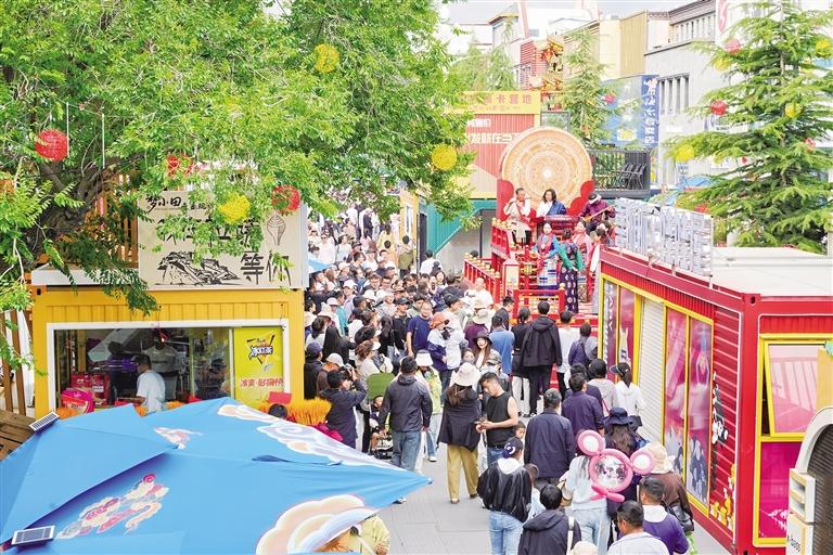 “拉薩不夜城”位于宇拓路的核心地段,銜接布達拉宮與大昭寺,全長370米。該項目以“文旅商融合·新業(yè)態(tài)新場景”為發(fā)展定位,緊扣“潮流煙火氣”主題,采用對稱式街區(qū)布局,精心打造集“夜游、夜購、夜宴、夜娛”于一體的夜間經(jīng)濟新地標。營業(yè)時間為7月15日至10月31日每日10:00-24:00,設有169個經(jīng)營點位,涵蓋創(chuàng)意集裝箱、定制餐車、特色經(jīng)營屋及開放式攤位,引入西藏非遺精品、特色文創(chuàng)產(chǎn)品、特色燒烤、高原精釀啤酒、潮玩互動等多元化業(yè)態(tài)。