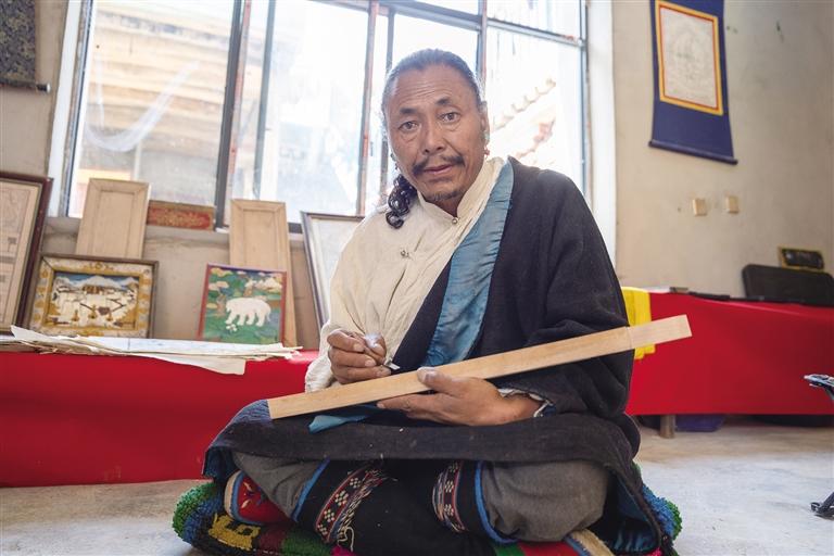 8月13日,記者來到尼木縣普松鄉(xiāng)曲水村的一個(gè)院落,58歲的斯曲正在窗邊埋頭雕刻,刻刀飛轉(zhuǎn)游走間,精致的花紋在木板上慢慢展現(xiàn),很快雕刻作品便初具雛形。作為普松雕刻第六代傳承人,斯曲自12歲起就在爺爺和爸爸的教導(dǎo)下開始學(xué)習(xí)這門手藝,如今的他早已成為普松雕刻自治區(qū)級(jí)非物質(zhì)文化遺產(chǎn)代表性傳承人。斯曲介紹,普松雕刻步驟煩瑣、工具講究,根據(jù)圖案復(fù)雜程度不同,耗時(shí)從6小時(shí)到3個(gè)月不等,十分考驗(yàn)雕刻者的耐心。