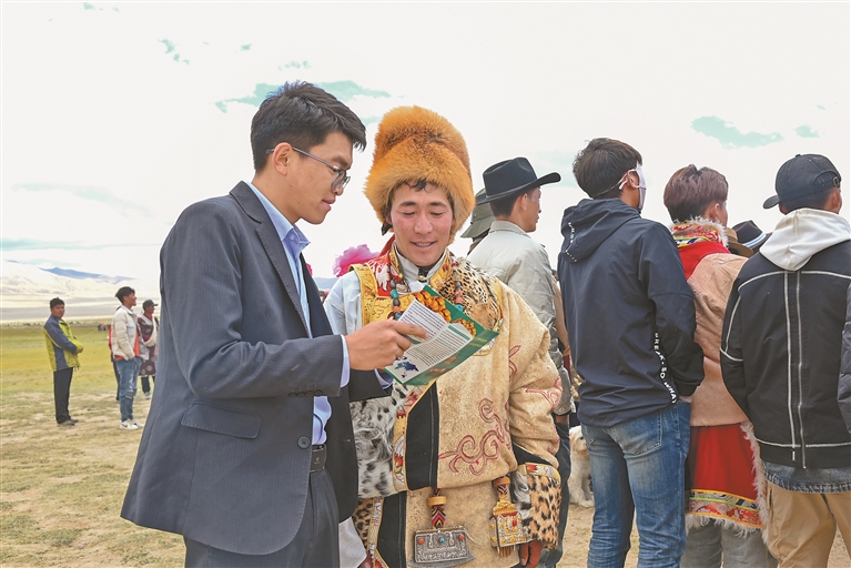農(nóng)行西藏分行工作人員為老百姓宣講金融政策。