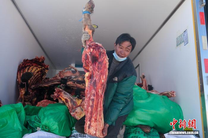 采訪間隙,一位顧客在魯久村的展銷點位購買了一只牦牛前腿和后腿,掃碼支付了4296元。該顧客說,他計劃用其中一只牦牛腿分割做風(fēng)干牦牛肉,另一只則當(dāng)藏歷新年年貨。