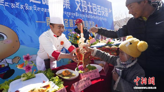 圖為艾瑪土豆舌尖游活動,游客品嘗特色美食。南木林縣文化和旅游局供圖。