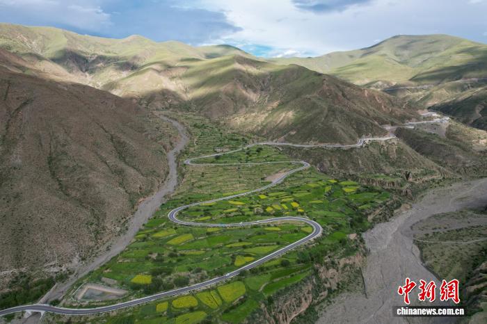 2025年7月15日,航拍西藏自治區(qū)拉薩市曲水縣境內的崗巴拉山盤山公路。(無人機畫面)中新社記者 江飛波 攝