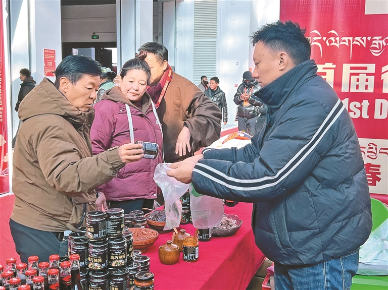 圖為市民在博覽會上選購辣椒醬。記者 央金 攝