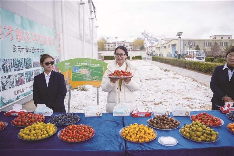 花卉種植基地智能化溫室大棚培育的水果。圖/記者 阿旺尼瑪