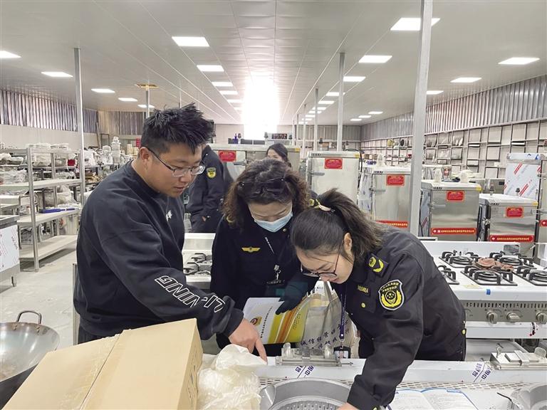 為進一步加強重點工業(yè)產(chǎn)品批發(fā)企業(yè)監(jiān)管工作,執(zhí)法人員通過現(xiàn)場檢查核對經(jīng)營主體資質(zhì)、經(jīng)營產(chǎn)品合格證、產(chǎn)品基本信息、CCC強制性產(chǎn)品認(rèn)證標(biāo)志、灶具熄火保護裝置、燃?xì)鈱?dǎo)管結(jié)構(gòu)、銘牌、產(chǎn)品外包裝標(biāo)志等內(nèi)容,要求經(jīng)營主體進一步落實進貨查驗制度,當(dāng)好“第一檢驗員”。