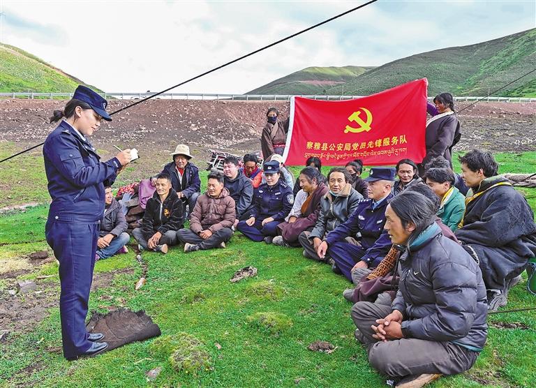 圖為派出所民警向扎拉牧區(qū)群眾宣傳法律知識(shí)。記者 次仁平措 攝
