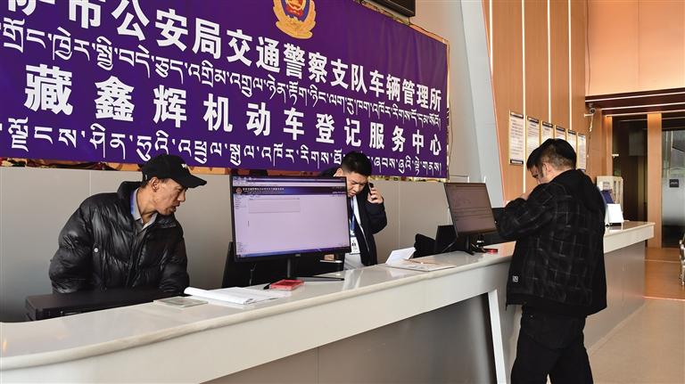 顧客在二手車交易市場辦理車輛登記業(yè)務。