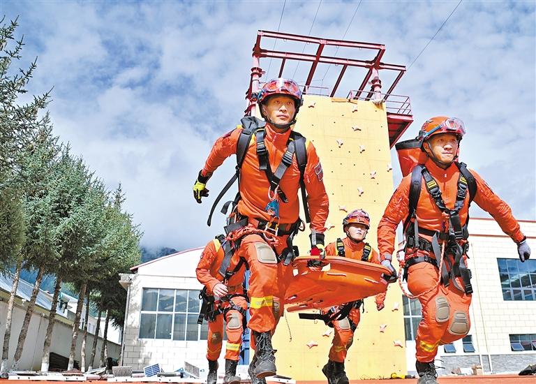 開展斜向救援技術訓練。本報通訊員 西繞拉翁 記者 謝筱純 王珊 攝