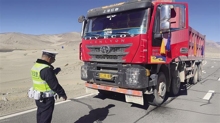 交警對過往車輛進行檢查。圖由自治區(qū)交管局提供