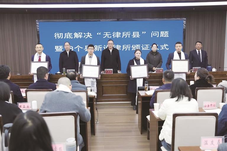 12月1日,西藏自治區(qū)司法廳舉行全區(qū)最后18個“無律所縣”新設(shè)律師事務(wù)所集中頒證儀式。這標志著西藏自治區(qū)徹底消除了“無律所縣”,實現(xiàn)了律師事務(wù)所在全區(qū)74個縣域的全覆蓋。