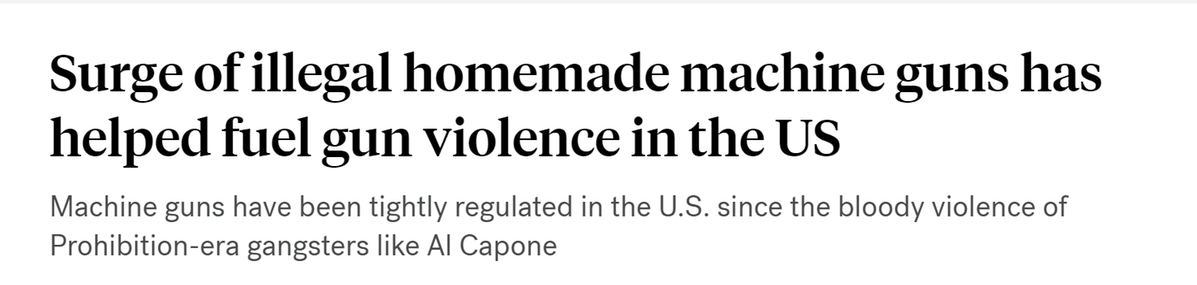 據(jù)報道,由于3D打印制作或在線購買的小型金屬或塑料零件的驚人增長,全美各地近年來都出現(xiàn)了使用經(jīng)改裝的全自動槍支制造的槍擊事件。盡管針對機槍的禁令可以追溯到上世紀(jì)二三十年代的禁酒令時期,但有關(guān)部門表示,格洛克開關(guān)、連發(fā)阻鐵等改裝零件的大量增加,使得普通人能夠?qū)⒑戏ǖ陌胱詣訕屩Ц难b得更加危險,進(jìn)而助長了槍支暴力。