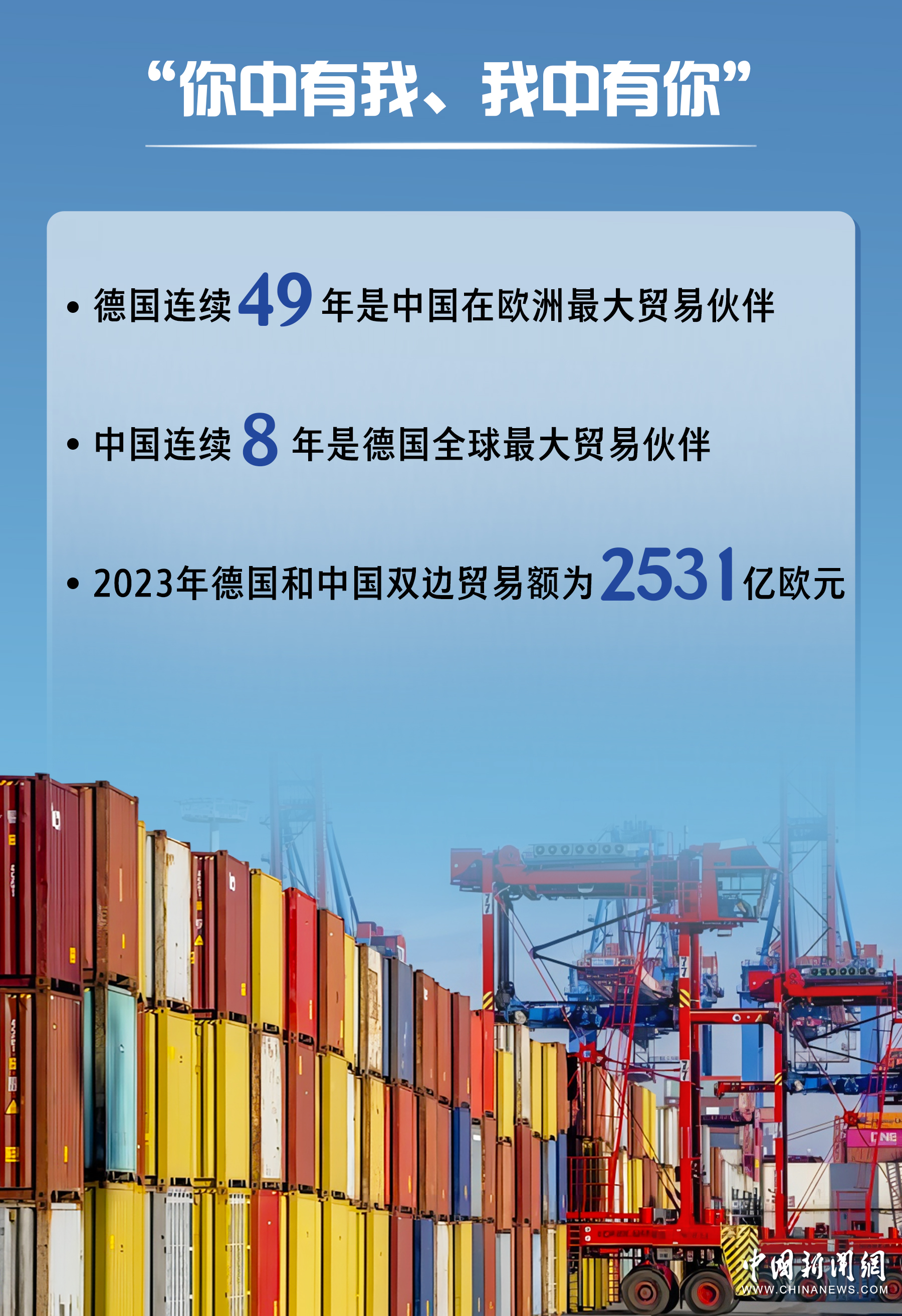 根據(jù)德國聯(lián)邦統(tǒng)計(jì)局?jǐn)?shù)據(jù),2023年德國和中國雙邊貿(mào)易額為2531億歐元,中國已連續(xù)8年成為德國全球最大貿(mào)易伙伴。德國連續(xù)49年是中國在歐洲最大貿(mào)易伙伴。