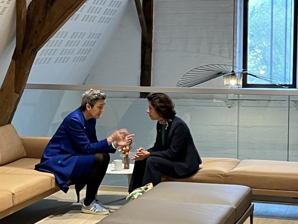 △歐盟競爭事務(wù)專員維斯塔格與美國商務(wù)部長雷蒙多交流(圖片源自維斯塔格個(gè)人社交媒體賬號(hào))