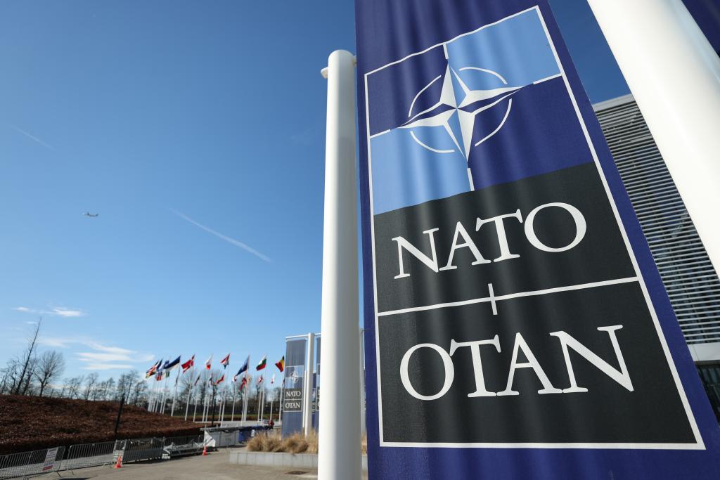 這是3月14日在比利時(shí)布魯塞爾拍攝的北約總部一角。新華社記者 趙丁喆 攝
