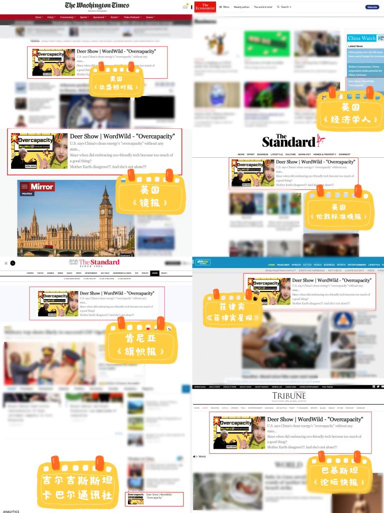 節(jié)目播出后,海外社交媒體瀏覽量突破百萬,被美國《華盛頓時報》、英國《鏡報》《倫敦標(biāo)準(zhǔn)晚報》《經(jīng)濟(jì)學(xué)人》、巴基斯坦《論壇快報》、菲律賓《星報》、肯尼亞《旗幟報》、吉爾吉斯斯坦卡巴爾通訊社等多家境外主流媒體轉(zhuǎn)載。