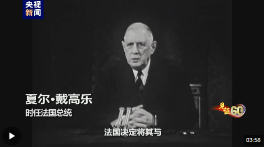 時(shí)任法國總統(tǒng) 夏爾·戴高樂:“法蘭西共和國決定將其與中華人民共和國的關(guān)系提升到正常的外交關(guān)系層面?!?/p>