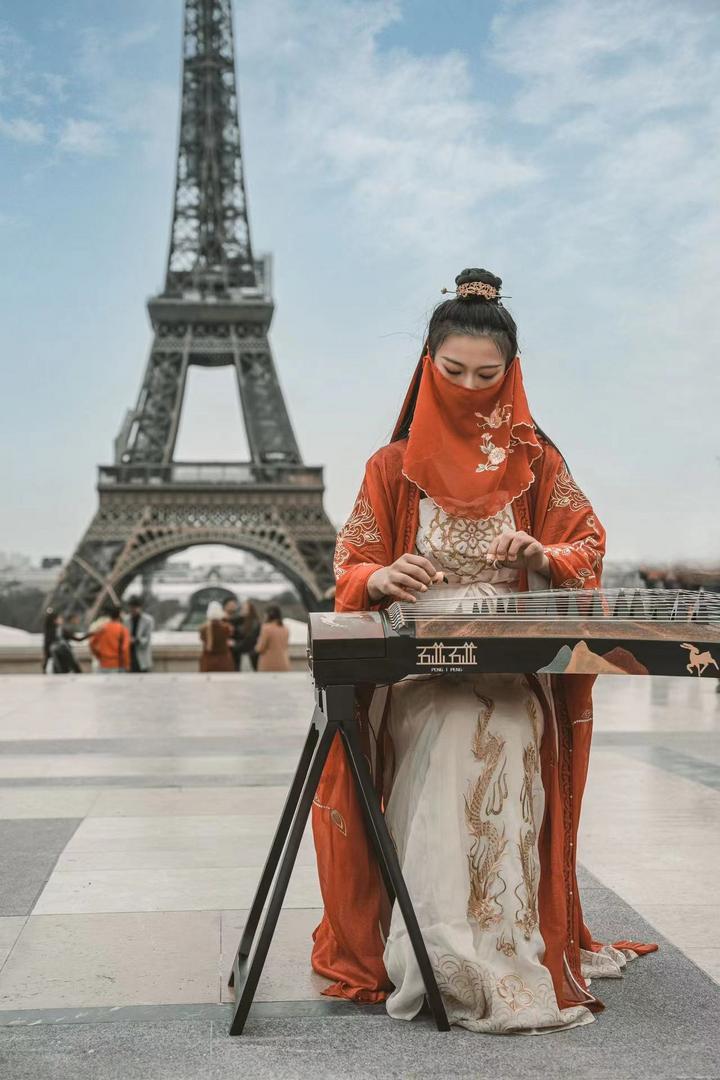 下一年的新學(xué)期,彭靜旋從國內(nèi)運來古箏,精心挑選曲目,開始在街頭彈奏。從那之后,歷史悠久的波爾多大劇院廣場前,出現(xiàn)了一個穿著漢服、戴著面紗的東方女孩,她撥弄琴弦,時而清脆、時而渾厚、時而悠揚的音樂自在流淌。