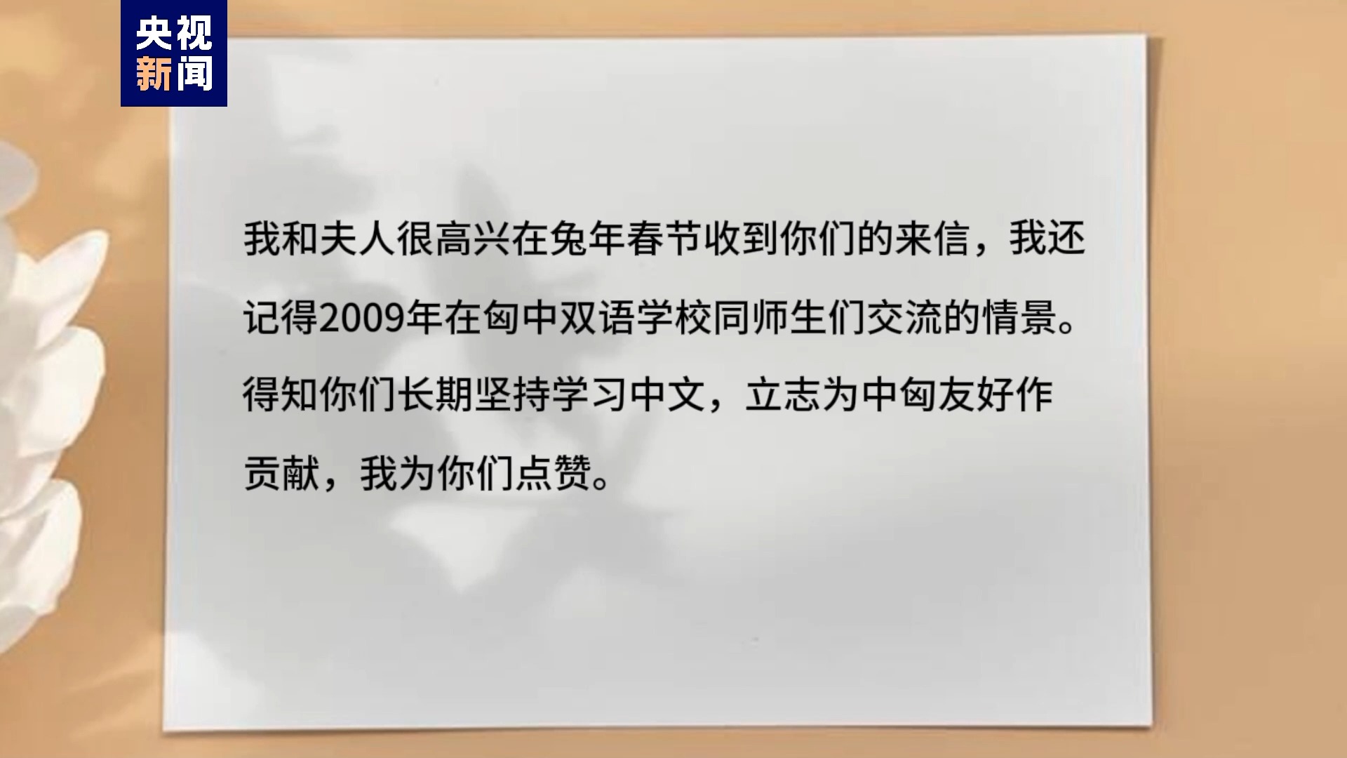 中國國家主席習(xí)近平在回信中寫道,他和夫人為在兔年春節(jié)前收到同學(xué)們的來信而感到高興,他還記得2009年在匈中雙語學(xué)校同師生們交流的情景。得知孩子們長期堅持學(xué)習(xí)中文,立志為中匈友好作貢獻(xiàn),他為孩子們點贊。