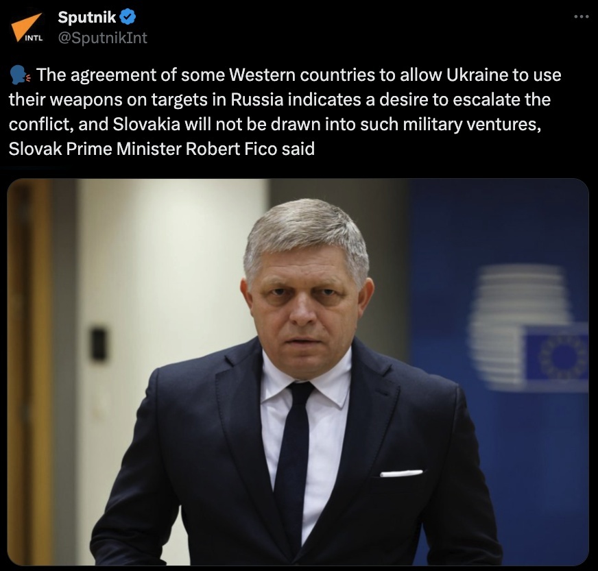 斯洛伐克總理菲佐日前也表示,西方國家允許烏克蘭使用西方武器襲擊俄羅斯本土目標(biāo),只能證明它們想要的不是和平,而是它們與俄羅斯緊張關(guān)系的升級,斯洛伐克不會被拉入這樣的軍事冒險。