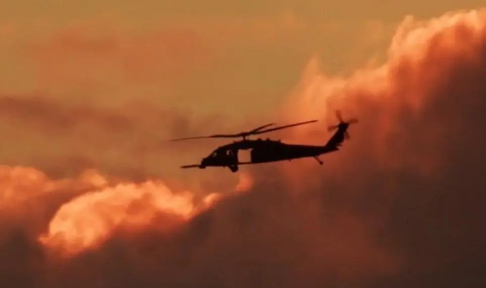 駐歐美軍直升機(jī)飛行在夕陽中。圖/《今日美國報》網(wǎng)站