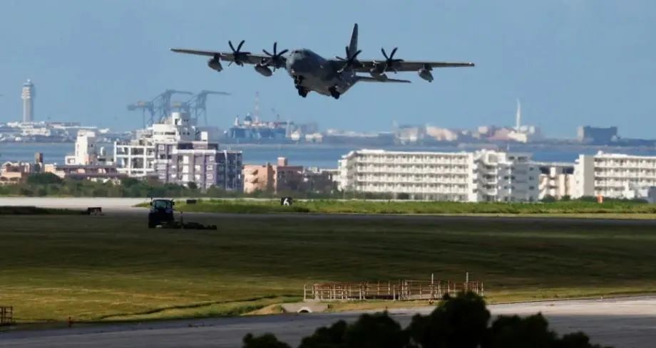 美軍運輸機(jī)從沖繩嘉手納基地起飛。圖/路透社