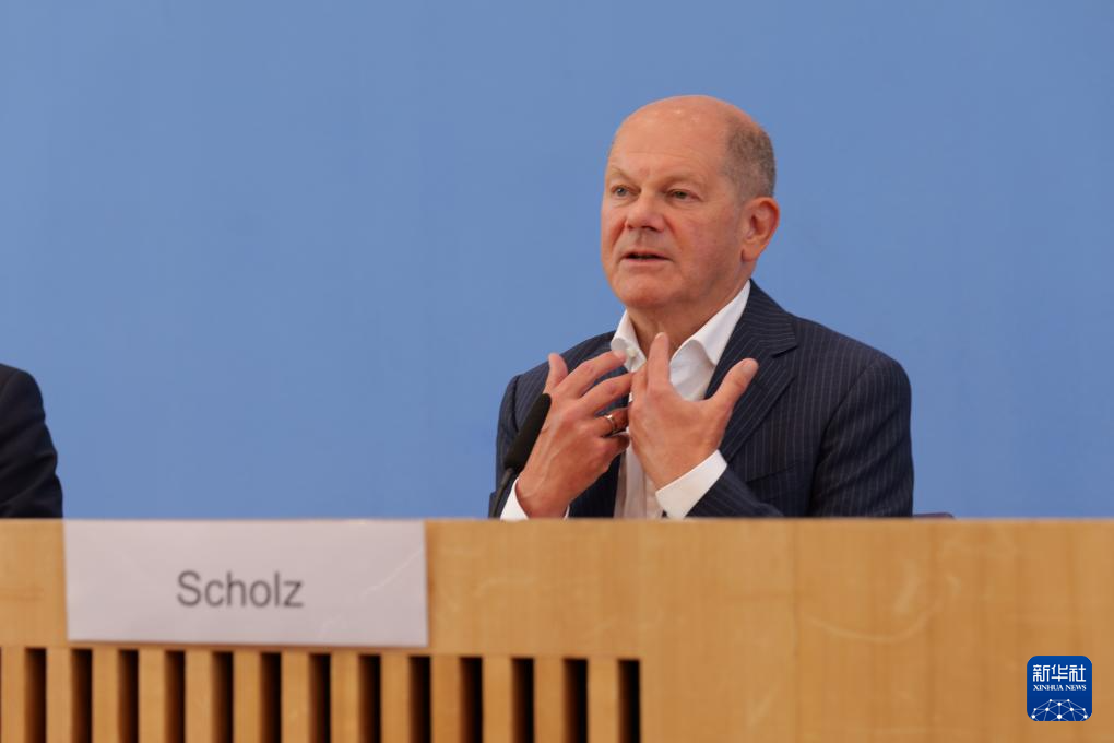 7月24日,德國(guó)總理朔爾茨在柏林舉行的新聞發(fā)布會(huì)上講話。新華社記者 李函林 攝