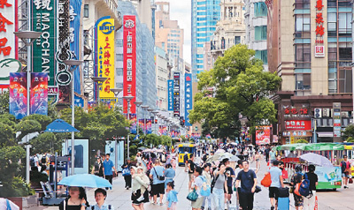 近日,上海迎來夏季旅游旺季。圖為7月24日,南京路步行街游客眾多。王岡攝(人民圖片)