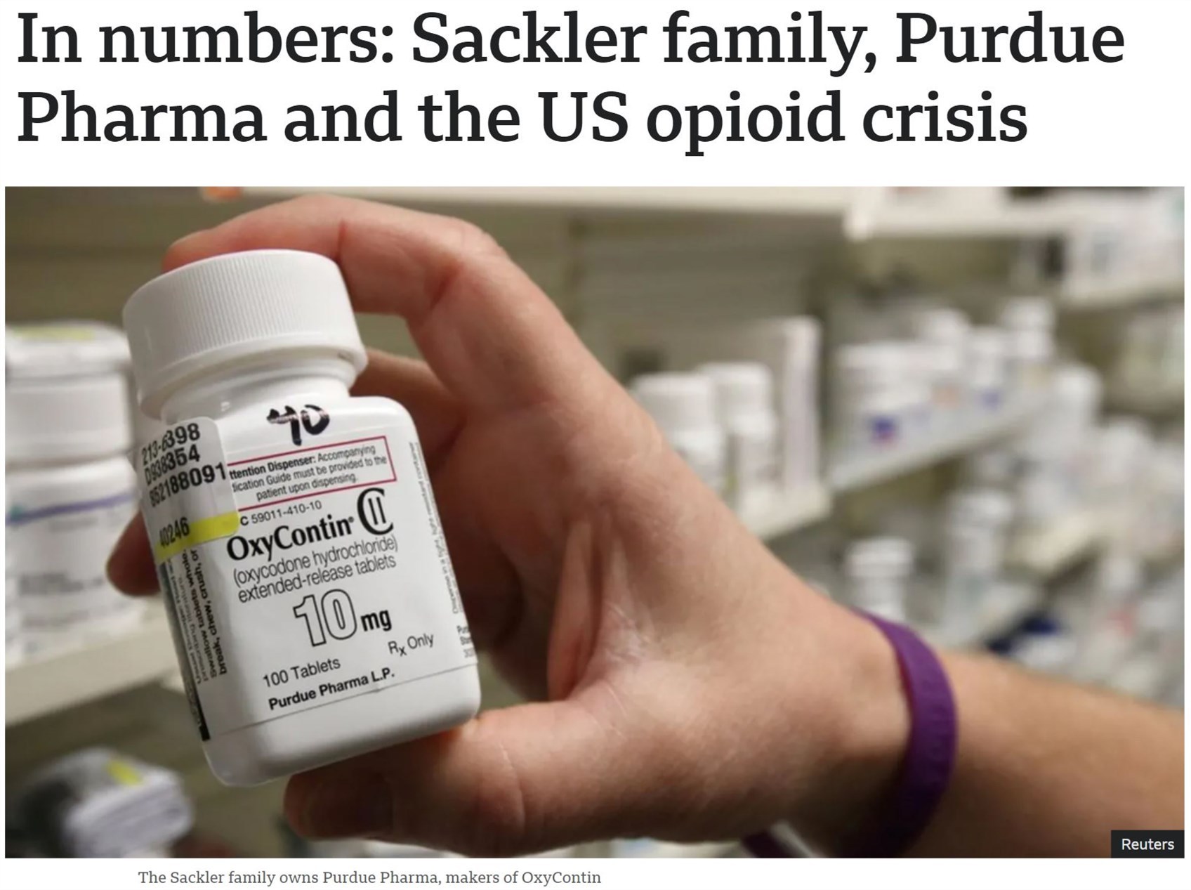2019年,薩克勒家族還被開出天價罰金,迫使普渡制藥公司總部申請了破產(chǎn)保護。