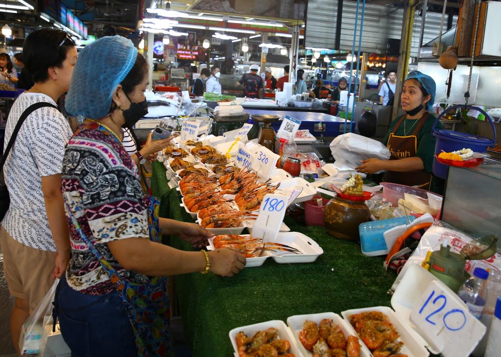 6月22日,人們在位于泰國曼谷的吞武里海鮮市場選購海鮮。新華社記者孫瑋彤?dāng)z