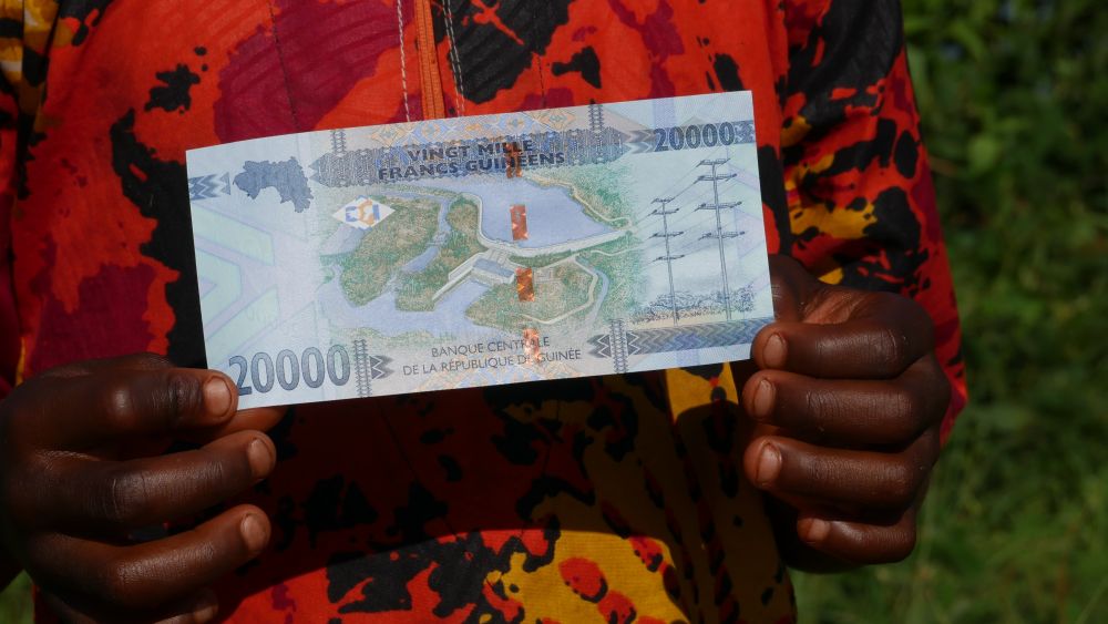 水電站的實際效果圖被印在面值2萬幾內(nèi)亞法郎紙幣背面。2023年9月7日攝。新華社記者鄭揚(yáng)子攝