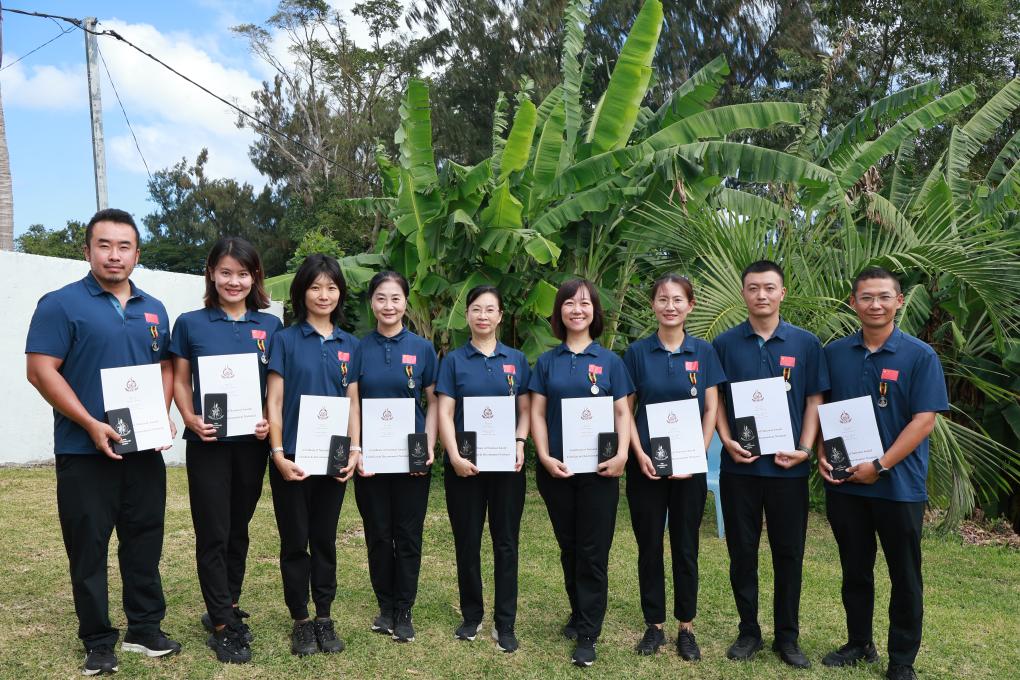 7月30日,在瓦努阿圖首都維拉港,中國援瓦醫(yī)療隊隊員手持證書合影。瓦努阿圖總統(tǒng)武羅巴拉武當天向中國醫(yī)療隊9名隊員頒發(fā)“國家勛章”,以表彰他們?yōu)樘嵘哚t(yī)療衛(wèi)生服務水平、鞏固瓦中兩國醫(yī)療衛(wèi)生合作作出的卓越貢獻。新華社發(fā)(中國援瓦醫(yī)療隊供圖)