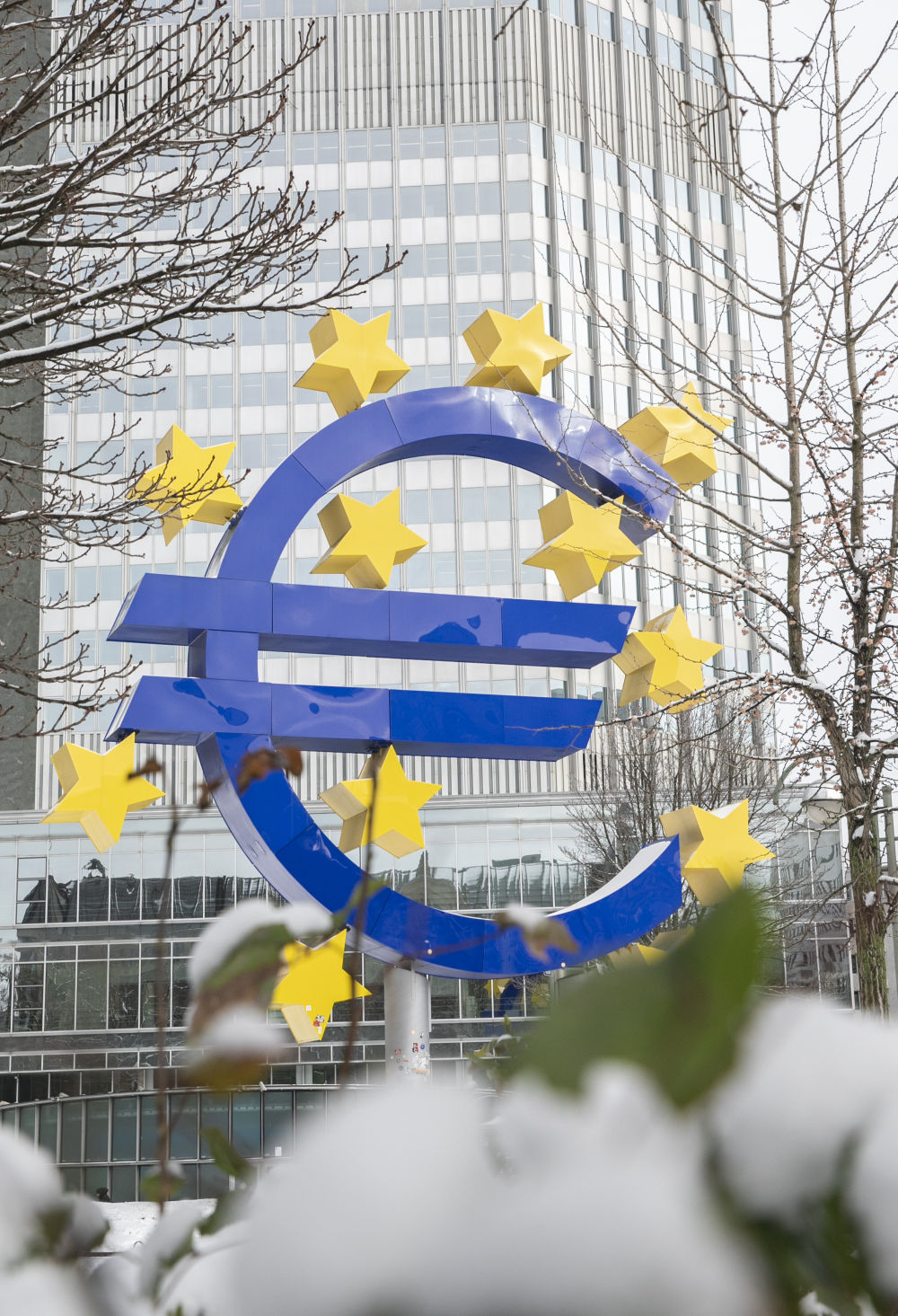 這是1月18日在德國法蘭克福拍攝的歐元標識。新華社記者張帆攝