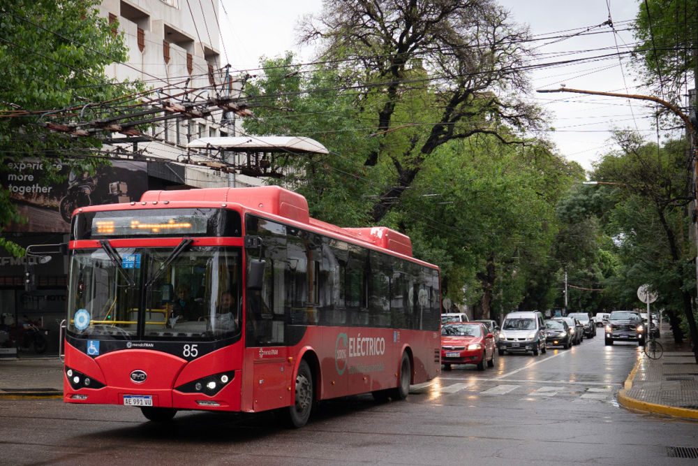 拜訪完酒莊,記者來(lái)到門(mén)多薩市區(qū)。這里,一些紅色公交車(chē)穿梭于林蔭道,車(chē)身上“百分之百電動(dòng)”的標(biāo)語(yǔ)非常醒目。這是門(mén)多薩于2019年從比亞迪和中通客車(chē)購(gòu)入的電動(dòng)巴士。由此當(dāng)?shù)氐谝恢щ妱?dòng)公交車(chē)隊(duì)正式投入運(yùn)營(yíng)。