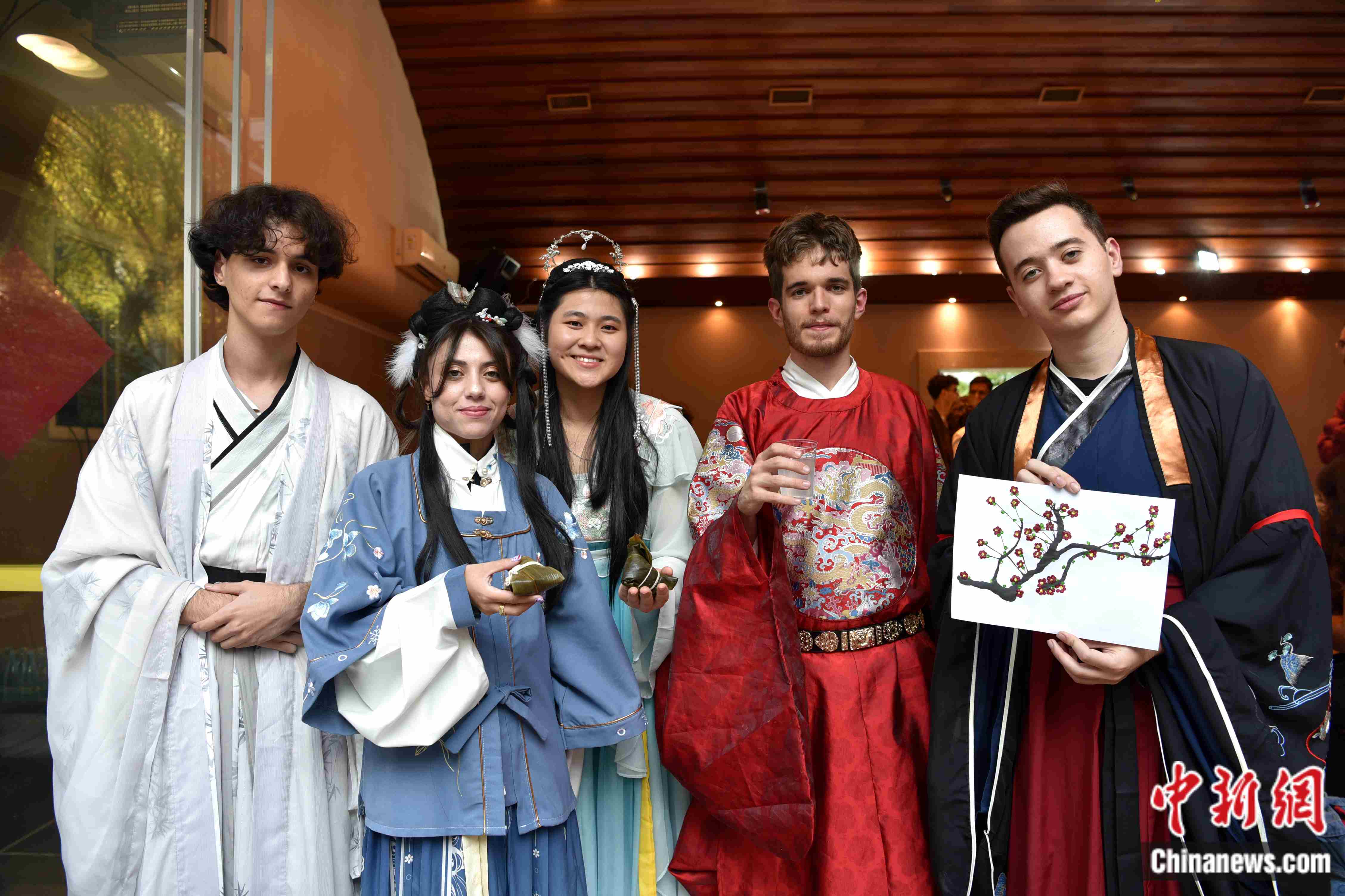 資料圖:中國駐圣保羅總領(lǐng)館舉行端午開放日,圣保羅州立大學(xué)孔子學(xué)院40余位學(xué)子共慶端午。巴西青年學(xué)子們穿上漢服,誦讀中國古詩詞,包粽子,沉浸式體驗中國端午習(xí)俗。 中新社記者 林春茵 攝