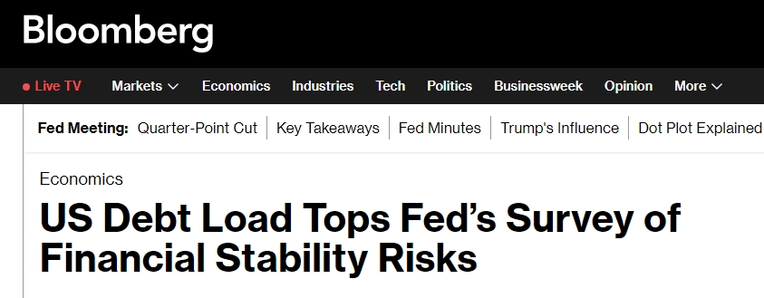 彭博社(Bloomberg)在報(bào)道中提到,美國政府的債務(wù)負(fù)擔(dān)現(xiàn)在被認(rèn)為是金融穩(wěn)定面臨的最大風(fēng)險(xiǎn),在美聯(lián)儲(chǔ)的一項(xiàng)調(diào)查中,其重要性超過了持續(xù)的通貨膨脹。逾半數(shù)受訪者(54%)認(rèn)為美國財(cái)政債務(wù)的可持續(xù)性是一個(gè)突出風(fēng)險(xiǎn),而半年前這一比例僅為40%。美聯(lián)儲(chǔ)的半年度金融穩(wěn)定報(bào)告寫道:“美國財(cái)政債務(wù)可持續(xù)性方面的擔(dān)憂位居榜首,其次是中東緊張局勢升級和政策的不確定性?!?/p>