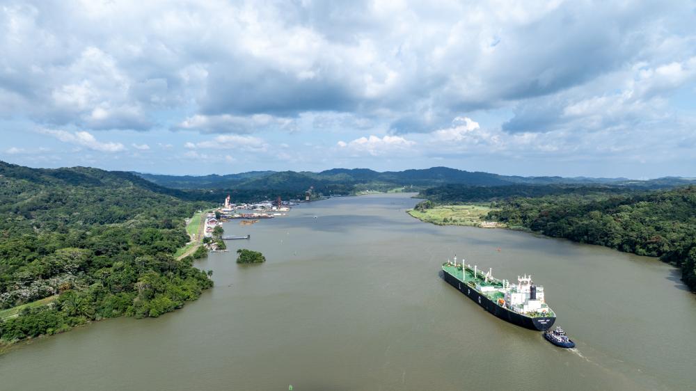8月28日,在巴拿馬首都巴拿馬城附近,船只在巴拿馬運(yùn)河上航行。新華社發(fā)